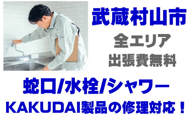 武蔵村山市で水栓メーカーKAKUDAIの修理業者をお探しなら当社までお気軽にお問い合わせください。蛇口の水漏れ、シャワーの故障などカクダイ製に関するトラブルなら何でもご相談ください。
