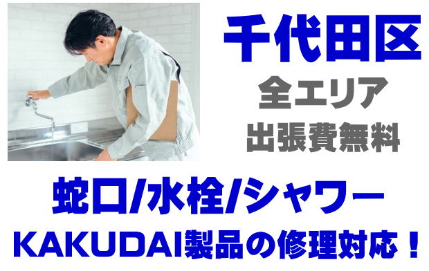 千代田区で水栓メーカーKAKUDAIの修理業者をお探しなら当社までお気軽にお問い合わせください。蛇口の水漏れ、シャワーの故障などカクダイ製に関するトラブルなら何でもご相談ください。