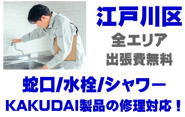 江戸川区で水栓メーカーKAKUDAIの修理業者をお探しなら当社までお気軽にお問い合わせください。蛇口の水漏れ、シャワーの故障などカクダイ製に関するトラブルなら何でもご相談ください。