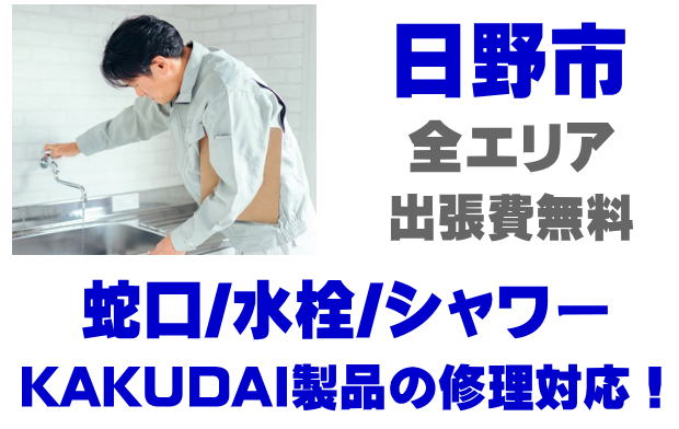 日野市で水栓メーカーKAKUDAIの修理業者をお探しなら当社までお気軽にお問い合わせください。蛇口の水漏れ、シャワーの故障などカクダイ製に関するトラブルなら何でもご相談ください。