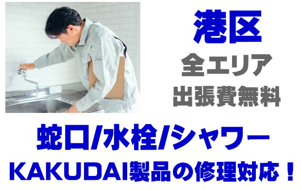 港区で水栓メーカーKAKUDAIの修理業者をお探しなら当社までお気軽にお問い合わせください。蛇口の水漏れ、シャワーの故障などカクダイ製に関するトラブルなら何でもご相談ください。