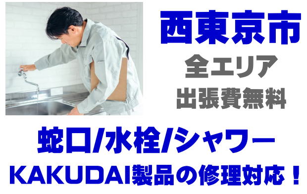 西東京市で水栓メーカーKAKUDAIの修理業者をお探しなら当社までお気軽にお問い合わせください。蛇口の水漏れ、シャワーの故障などカクダイ製に関するトラブルなら何でもご相談ください。